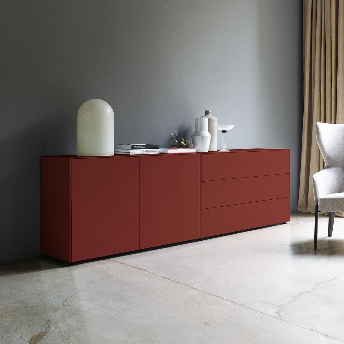 Ob als Sideboard im Wohnzimmer, eleganter Stauraum im Arbeitszimmer oder praktische Aufbewahrung im Flur – die Nex Pur Boxen passen sich jeder Raumsituation an. Mit einer breiten Auswahl an Farben und Größen lassen sie sich flexibel kombinieren und eröffnen vielfältige Möglichkeiten für individuelle Einrichtungskonzepte.
